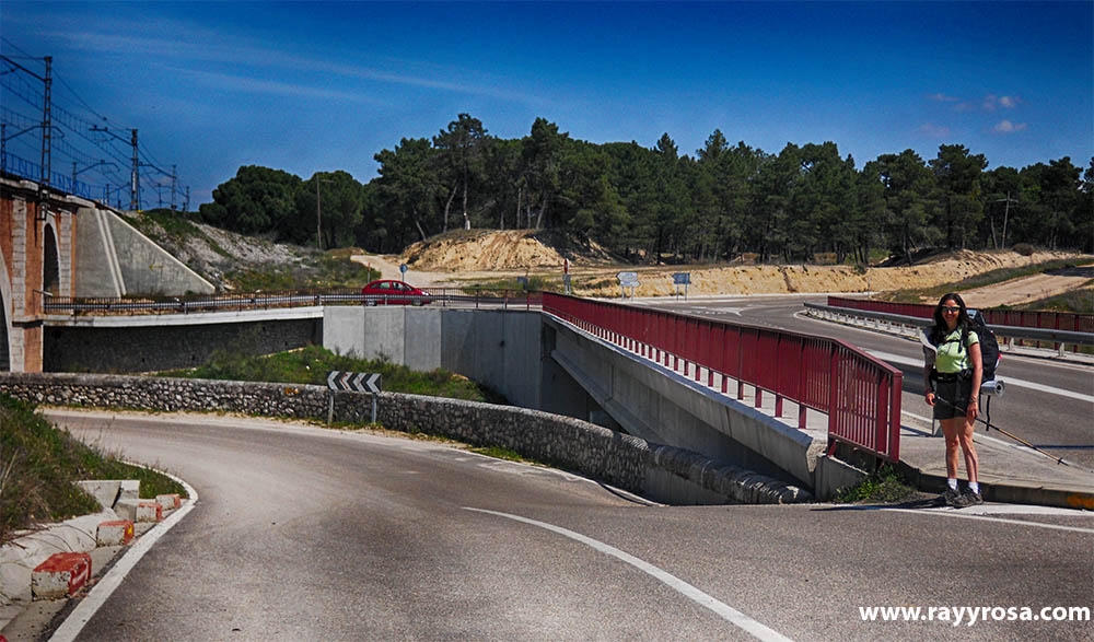 Seguimos andando paralelas a la vía del tren. Sabemos que tenemos que cruzar la vía pero no encontramos por dónde. Encontramos un agujero como de una tubería enorme que parece que cruza la vía por debajo. Cuando mi hermana intenta meterse dentro, hace un giro extraño con la pierna y le cruje la rodilla. ¡A tomar por saco el Quiste de Bécquer o algo así! No dice ni pío pero la pierna se le empieza a hinchar y así seguirá hasta que acabemos esta fase de nuestro Camino.
